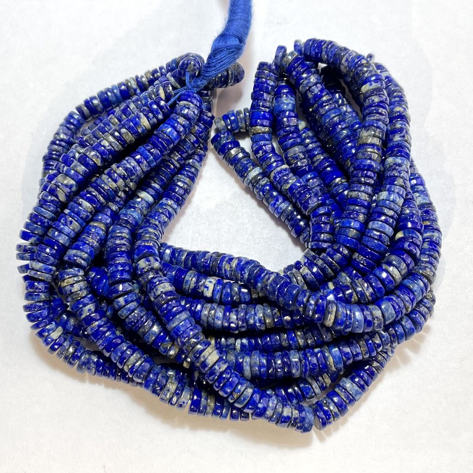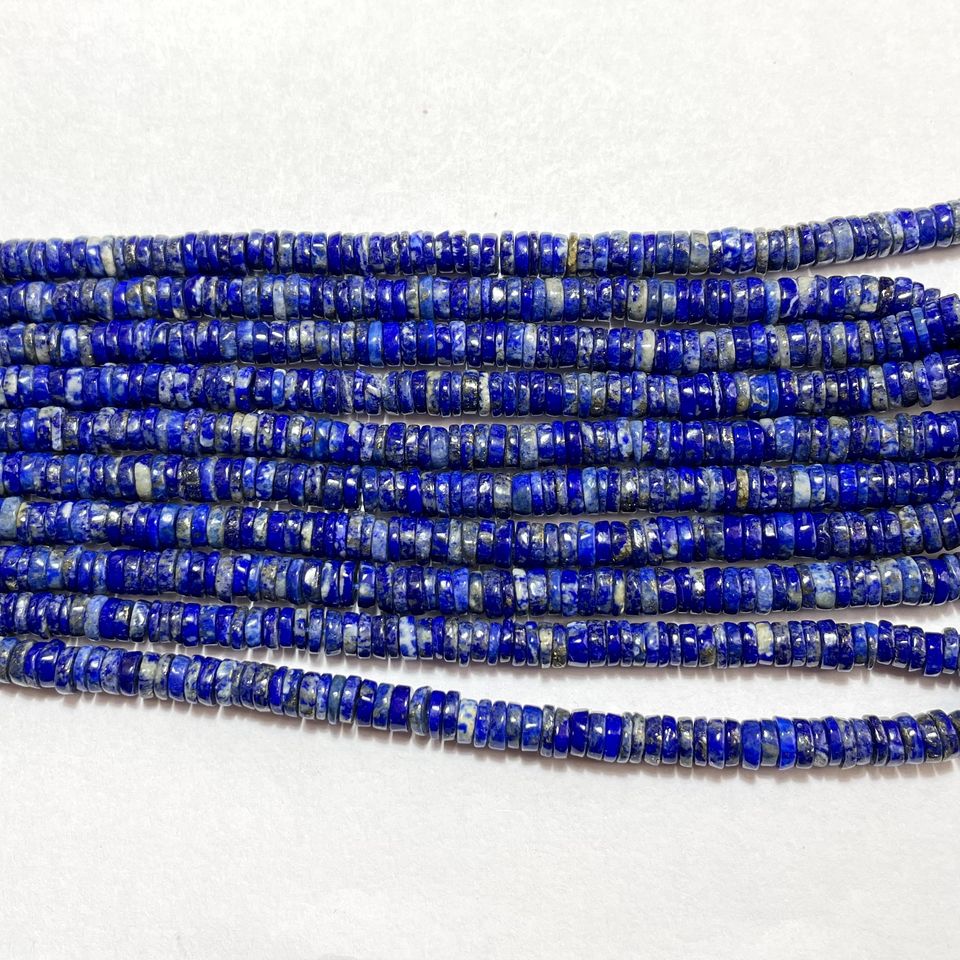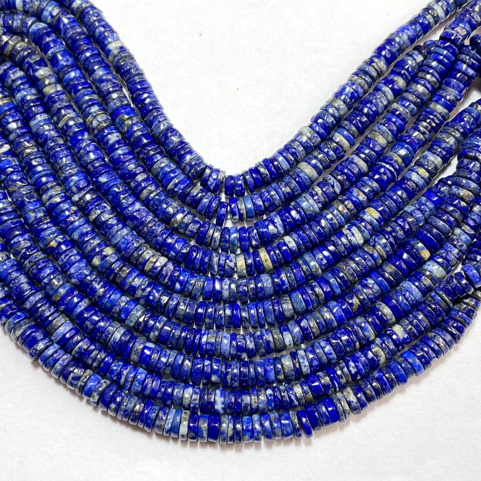 Natural Lapiz Lazuli Smooth Round Heishi Beads Blue Gemstone with Center Drill Tier Shape 5-5.5MM 14 Inch Long Strand