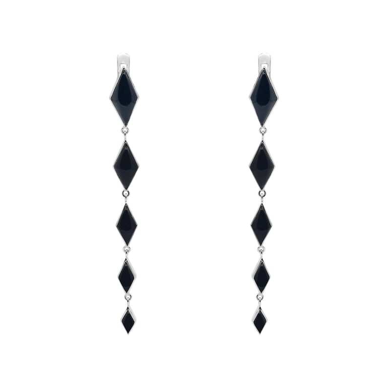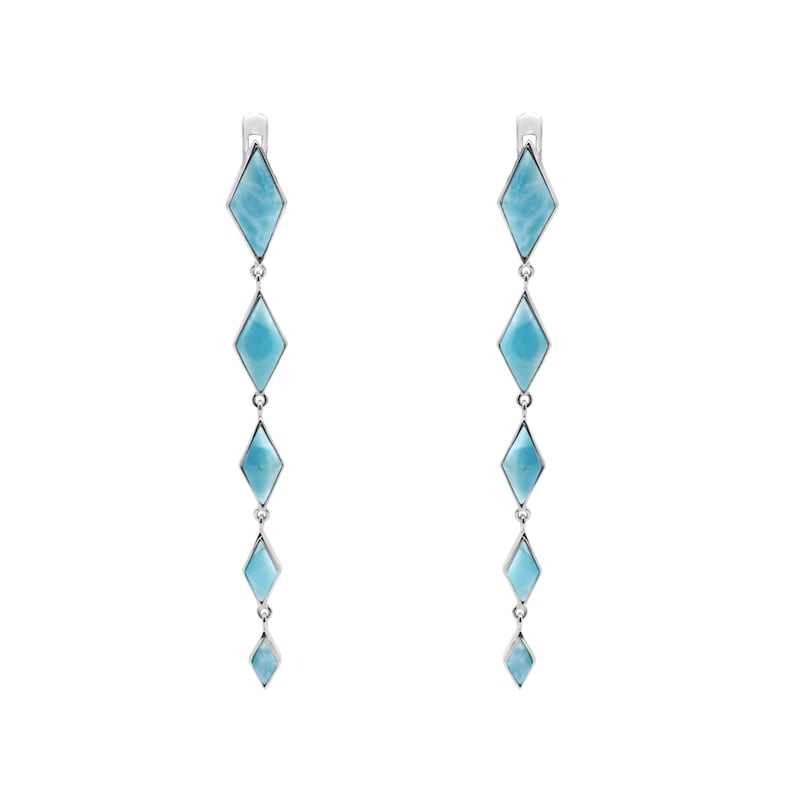 Natural Larimar Arizona Turquoise Black Onyx Kite Shape Long Dangle Earrings 925 Sterling Silver GIA Certified Premium Grade