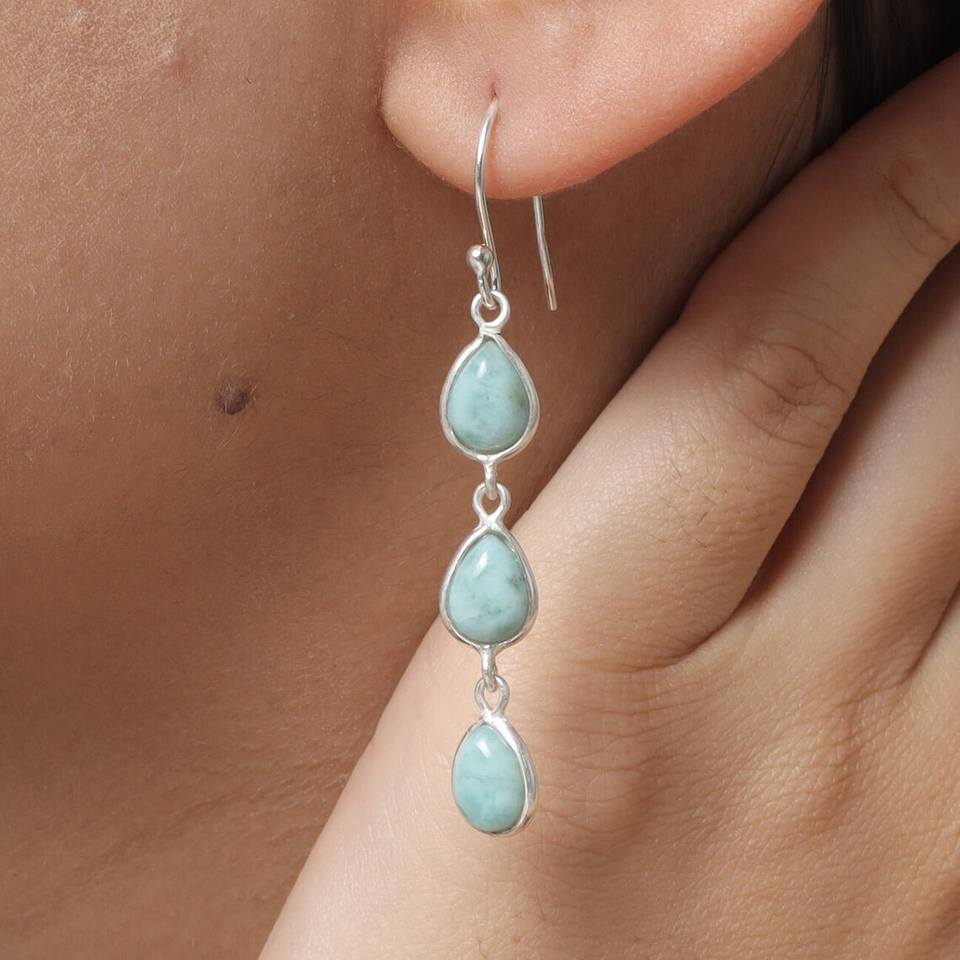 Natural Larimar Gemstone Silver Earrings