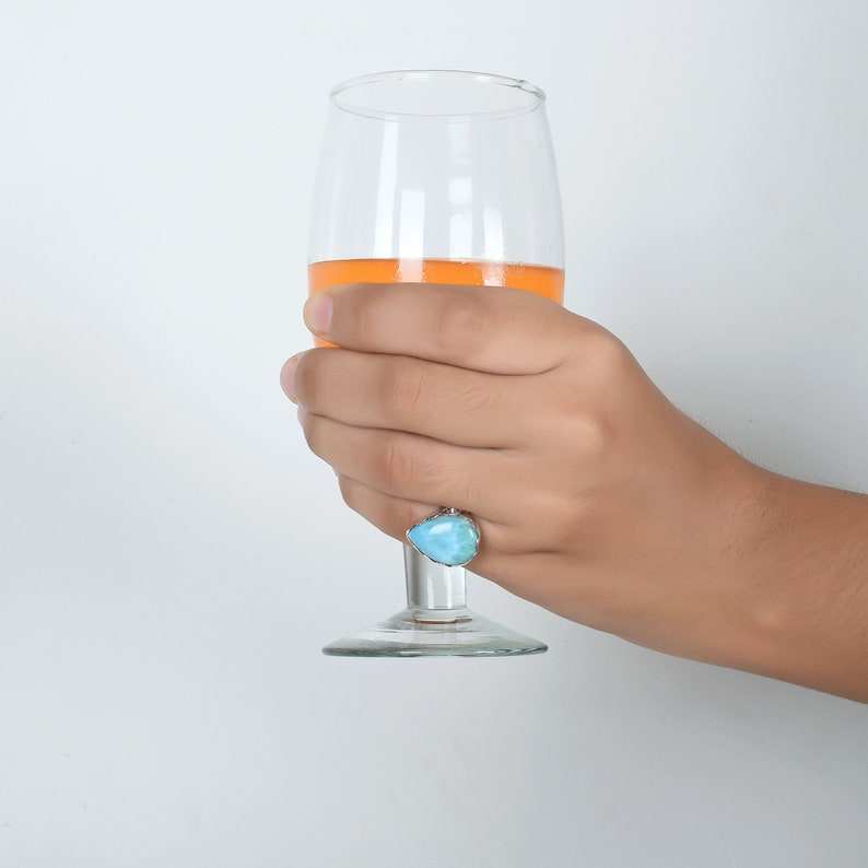 Natural Larimar Statement Ring For Women Handmade Boho Jewelry Gift For Her Valentines Day Bridesmaid Ring Sterling Silver