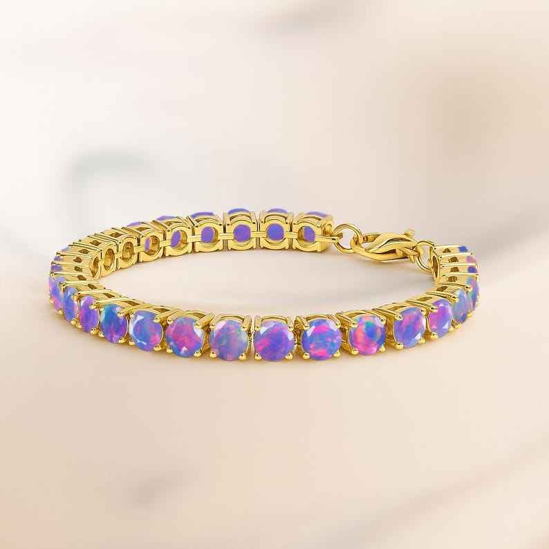 Keyword:Lavender Opal multi fire Tennis Glowing Expansive Bracelet Crafted