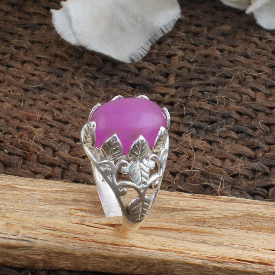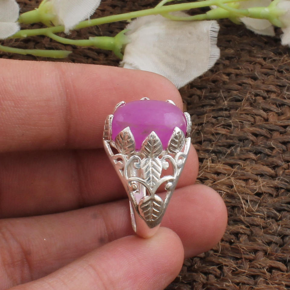Natural Lavender Purple Jade Flower Ring 925 Sterling Silver Floral Ring Unique Gemstone Jewelry for Women Wedding Gift