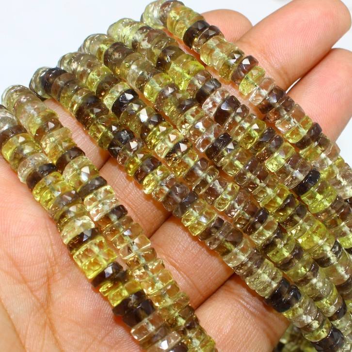 Natural Lemon Quartz Faceted Heishi Tyre Shape Loose Beads 5-6mm Quartz Gemstone Beads For Jewelry Making At Wholesale Price 16"