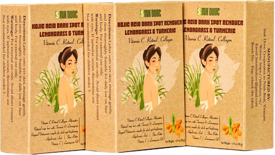 Sodium Palmate , Sodium Palm Kernelate, Glycerin, Aqua (Water), Potassium Cocoate, Cymbopogon Flexuosus Oil, Sucrose, Citric Acid, Sea Salt, Curcuma Longa (Turmeric) Root Powder, Butyrospermum Parkii (Shea) Butter, Kojic Acid, Ascorbic Acid (Vitamin C), Retinol, Hydrolyzed Rice Protein (Collagen Alternative), Sodium Hyaluronate, Tocopheryl acetate (Vitamin E Acetate).