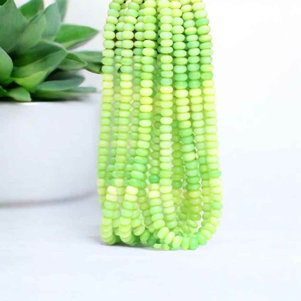 Natural Lime Green Shaded Opal Smooth Rondelle Stone Beads 7mm & 10mm Loose Gemstone Beads for Jewelry Making Bulk Supply India