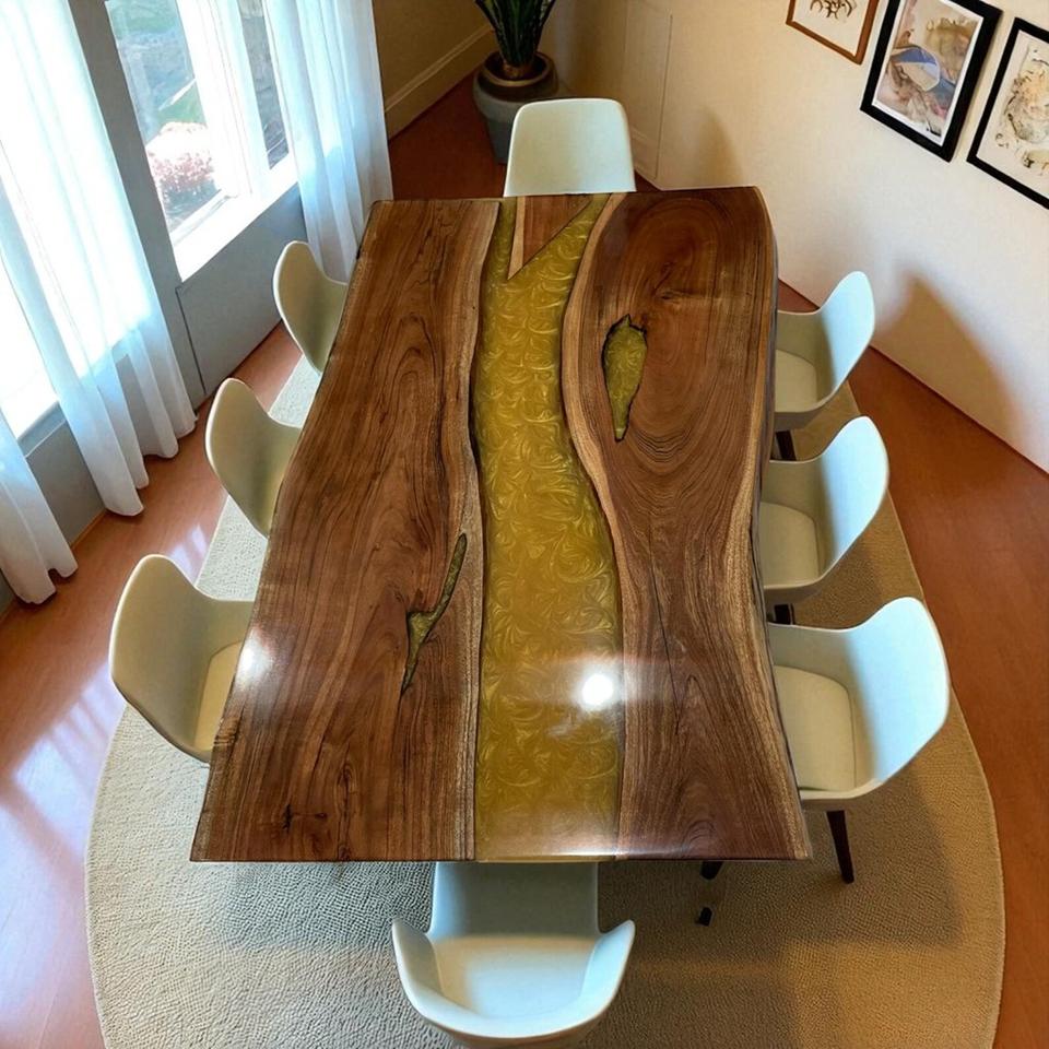 Natural Live Edge Wood Epoxy Resin Dining Table Top Modern River Table Design