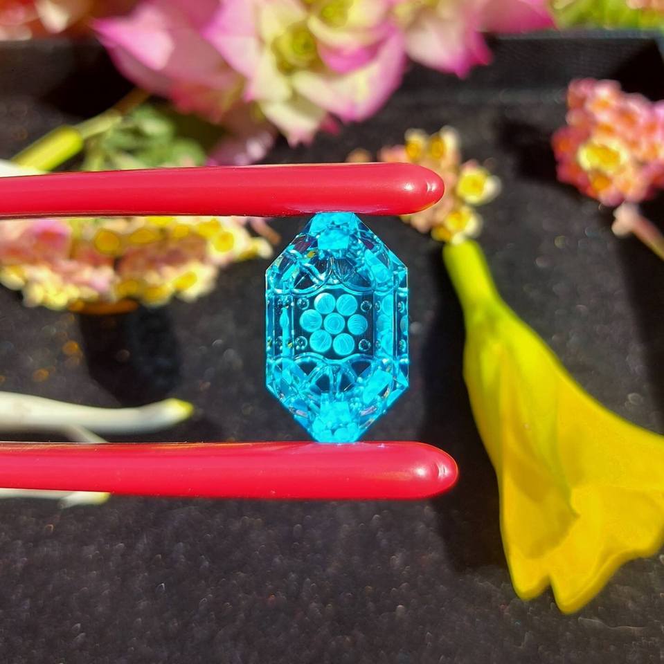 Natural London Blue Topaz Gemstone Loose Gemstone Handmade Carving on Stone Flower Made for Making Jewelry for Men and Women Gif