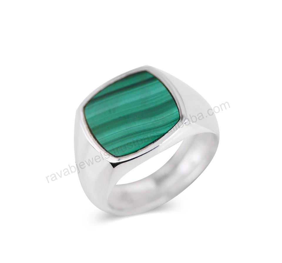 Handmade 925 Silver Malachite Ring for Men Classic Square 13mm Engagement Ring Birthstone Gift Jewelry Direct Manufacturer