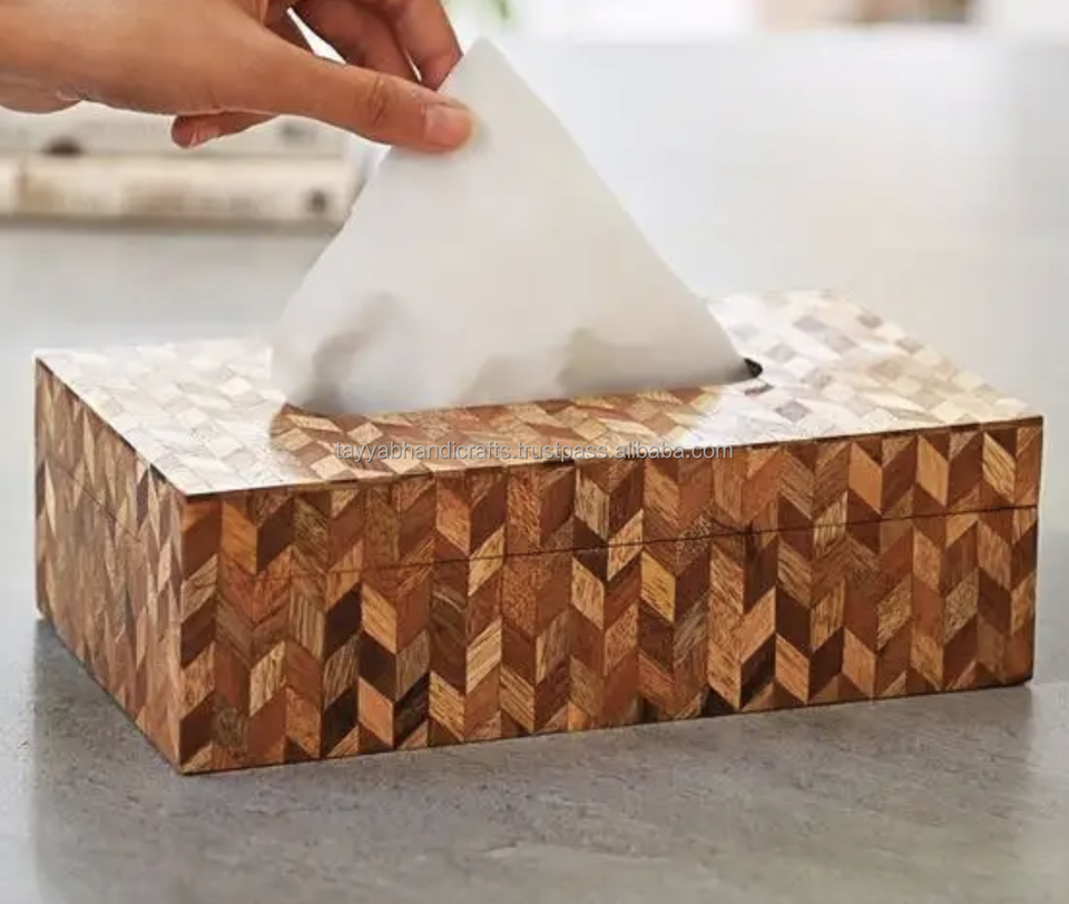 Natural Mango Wood Napkin Holder with Metal & Tissue Paper Box Holder Wood Tableware Napkin Tray