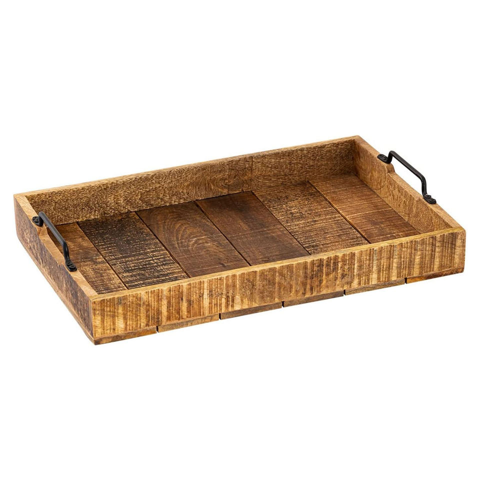 Wooden Serving Tray with Metal HandlesProduct Name