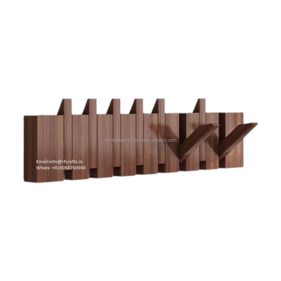 Natural Mango Wood Wall-Mounted Piano Coat Rack with 5 Hooks Handmade Flip Wall Hook Rack for Bathroom and Garage Storage