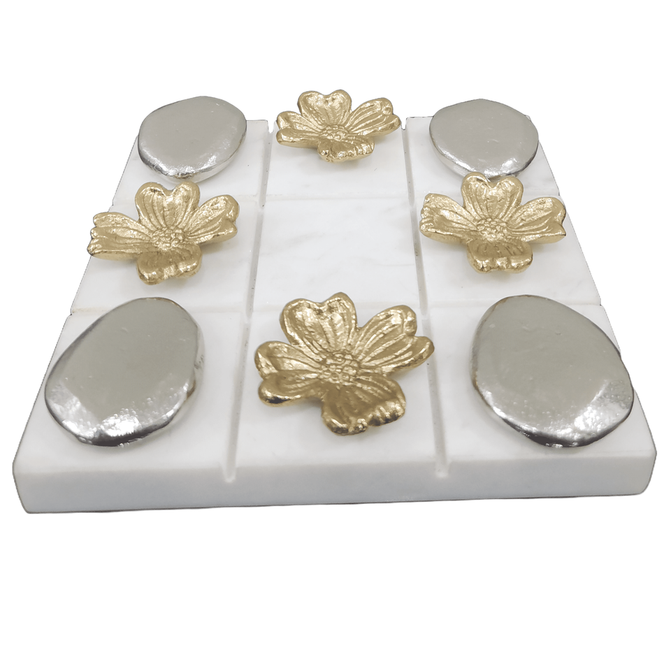 Natural Marble Board Tic Tac Toe With Metal Noughts & Crosses Nine Square Educational XO Game