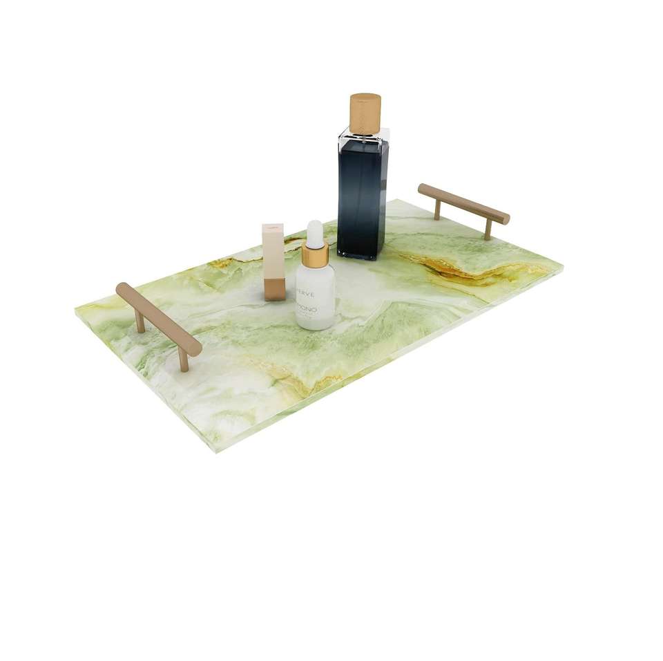 Natural Marble Decorative Tray with Stylish Metal Handle, Handmade Dresser Tray for Jewelry Displays, Kitchens, Counters tray