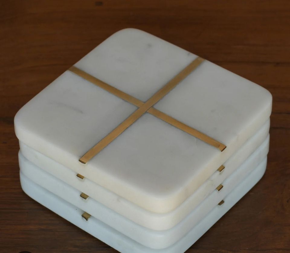 High Quality White Natural Marble Stone Coasters Set Polished Round and Cute Design for Party Decorative Drink or Coffee Cup