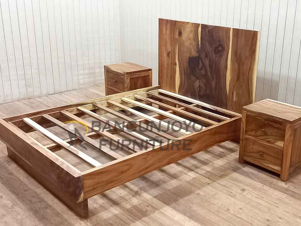 Natural Modern King Size Bed Frame Slab Solid Pine Wood with Monkey Pod 1 Set for Home Bedroom Furniture-BJF99 ID 7320076