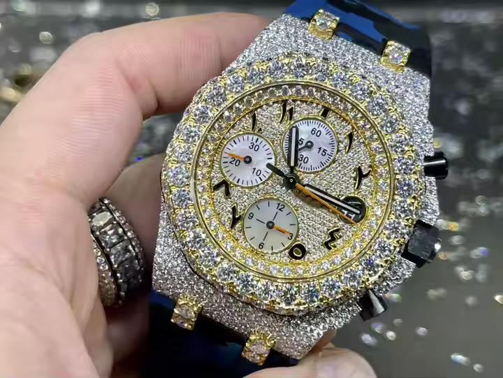 Natural Moissanite Diamond Men Watch Sterling Handmade Watch Square Shape Case Party Luxury Watch.