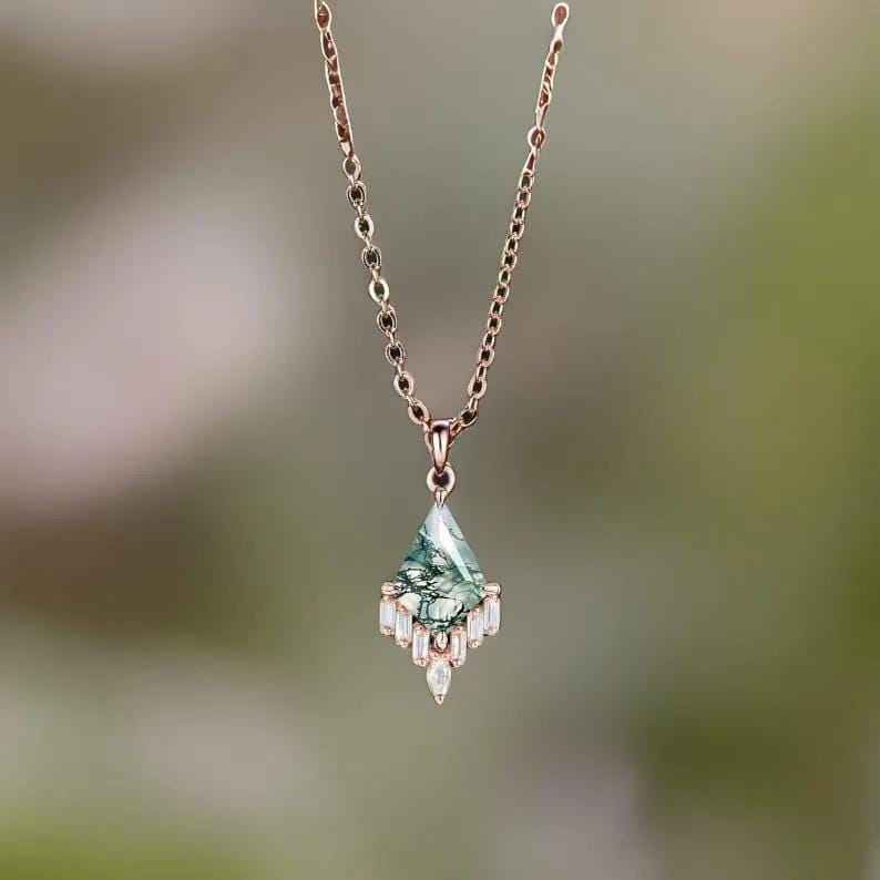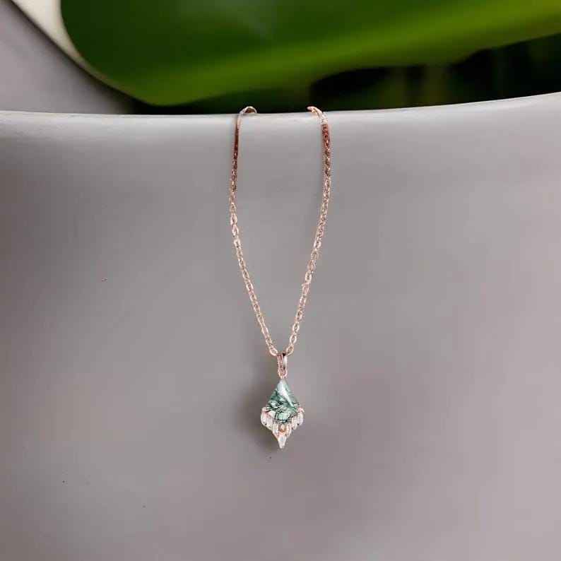 Natural Moss Agate Kite Shaped Children's Necklace Sterling Silver Dainty Friendship Promise Gift
