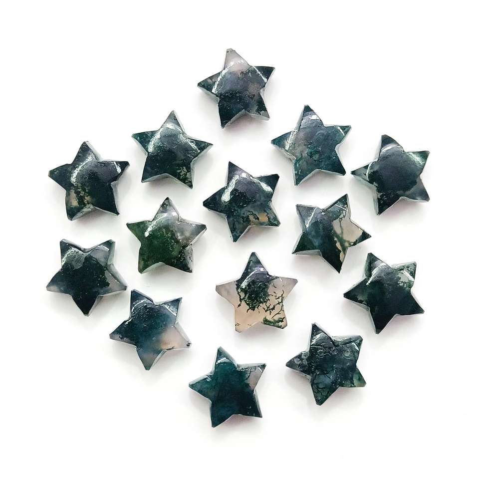 Product name:Moss Agate Smooth Star Carved Beads