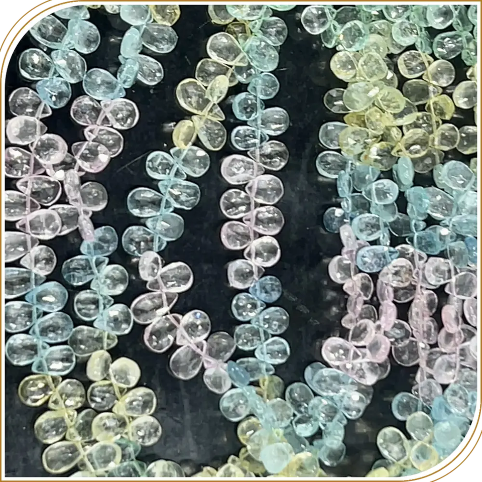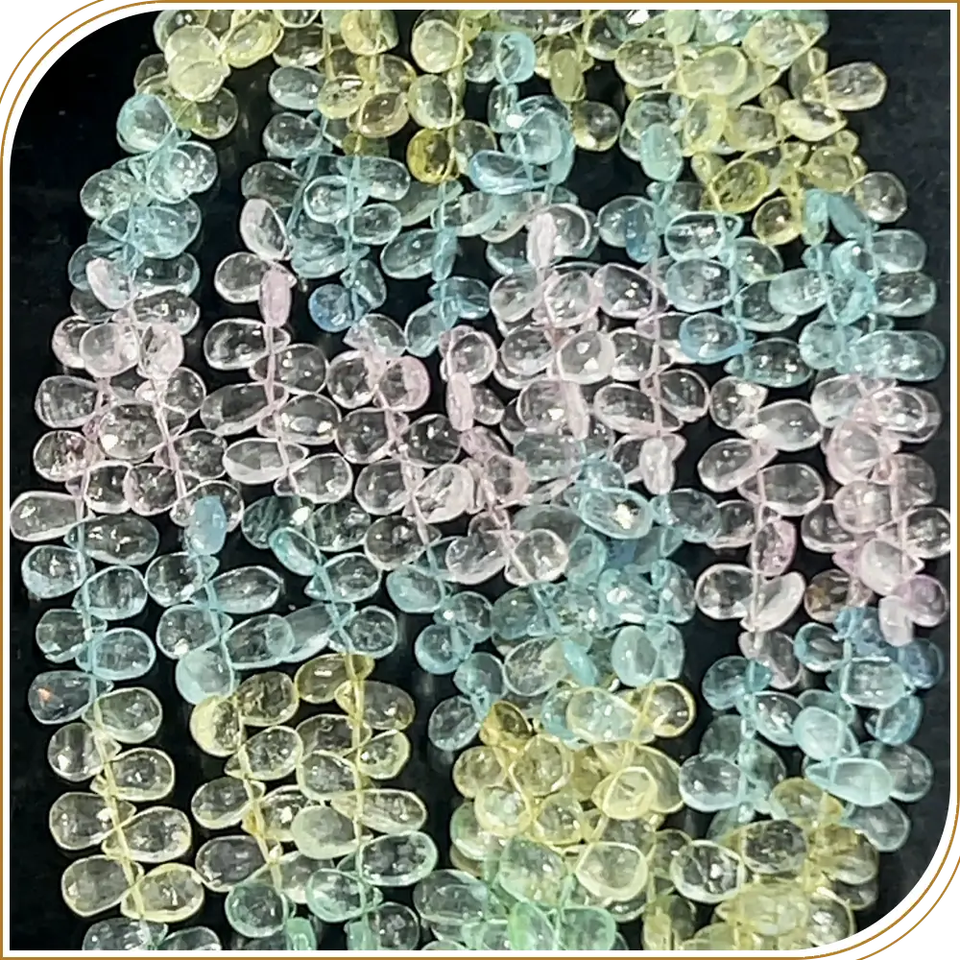 Natural Multi Aquamarine Faceted Briolette Peardrop Beads 6mm Size 8 Inch Strand Gemstone Beads Craft Wholesale