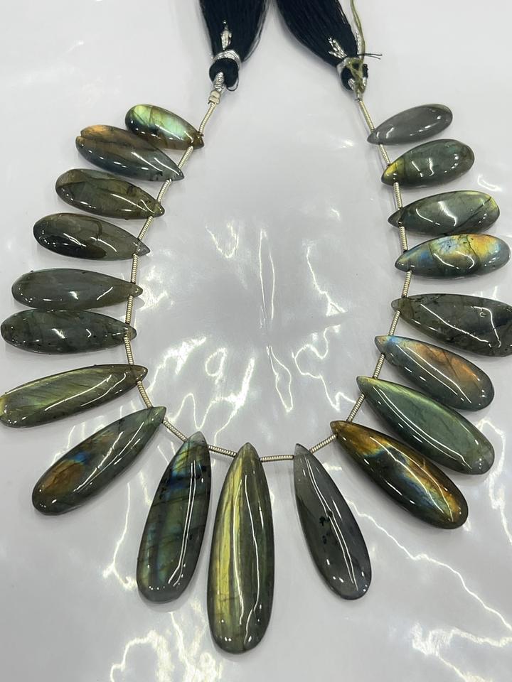 Natural Multi Fire Quartz Labradorite Beads 8-Inch Smooth Briolette Long Pearl Drop Strands From Jaipur Rajasthan