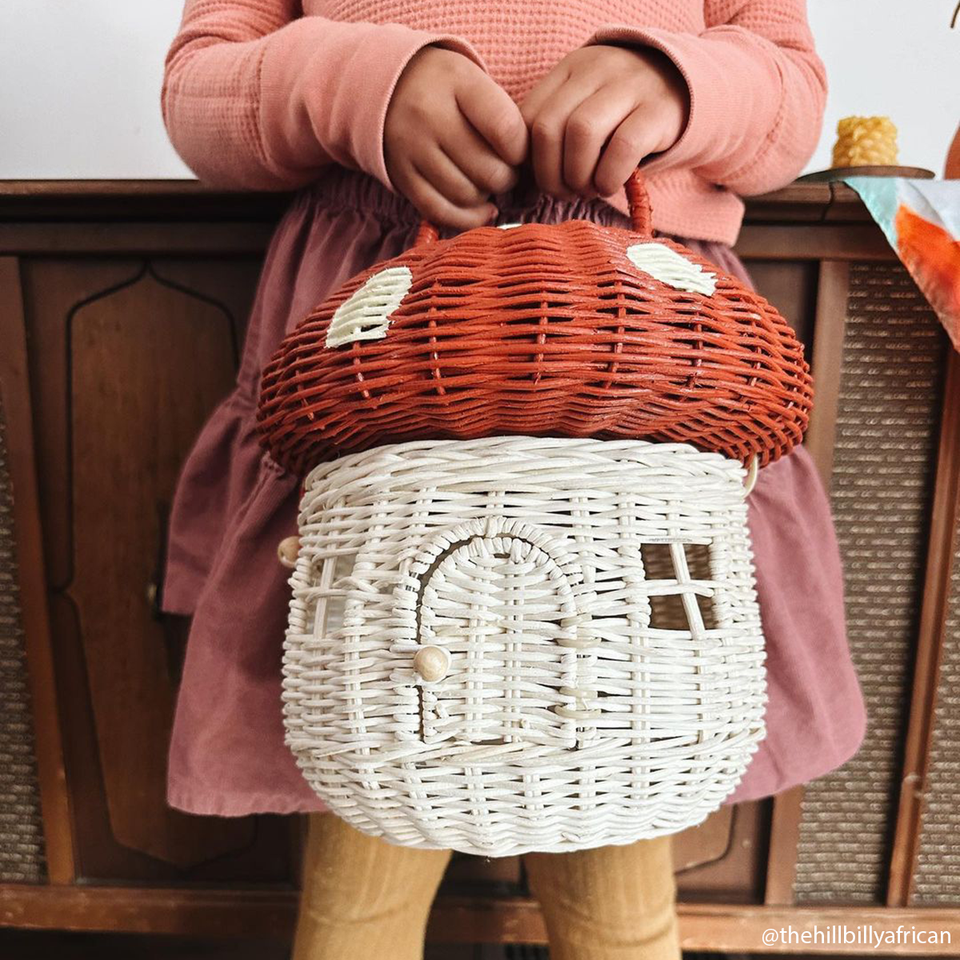 Natural Mushroom Rattan Basket with Handle New Design Custom Size for Decoration Furniture or Gift