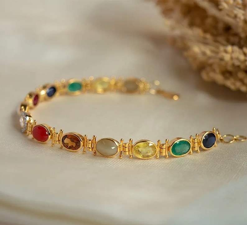 Keyword:Natural Navratan 14K Gold Luxury Bracelet Crafted With Nine Gemstones