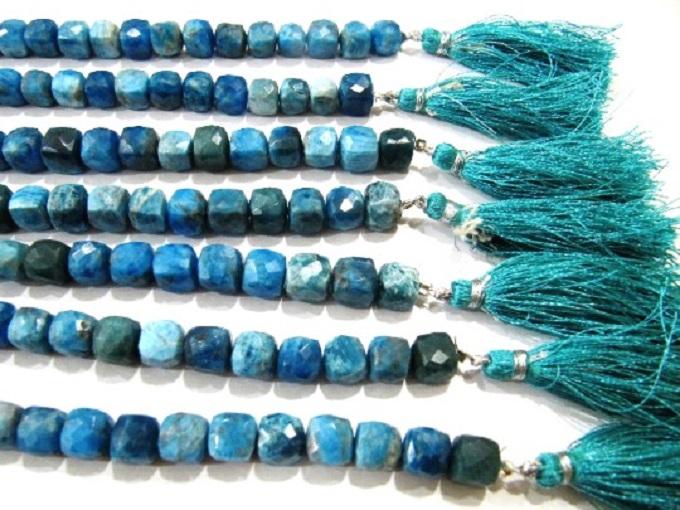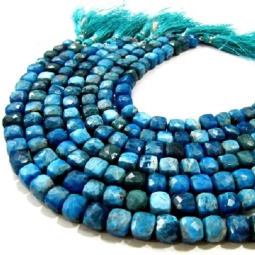 Natural Neon Apatite Beads 3D Cube Box Shape Briolette 6mm-8mm Gemstones Strand 8 Inches Jewelry Bracelet Material