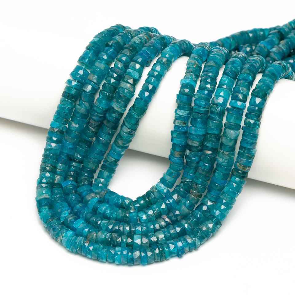 Natural Neon Blue Apatite Stone Faceted Heishi Tyre Gemstone Beads 7mm 8mm Wholesale Precious Apatite Beads for Jewelry Making