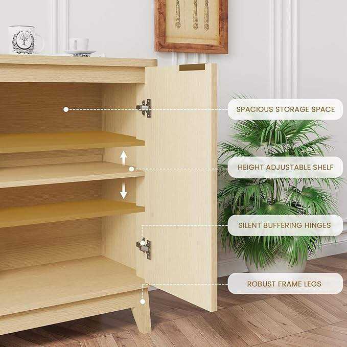 Natural Oak 4-Door Fluted Sideboard Buffet Cabinet Credenza Storage Console Table for Home Bar Accent Coffee Entryway Table