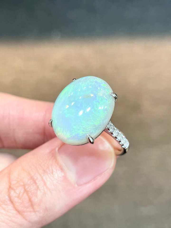 Rainbow Opal Ring for Women Ocean Nature Inspired Fire