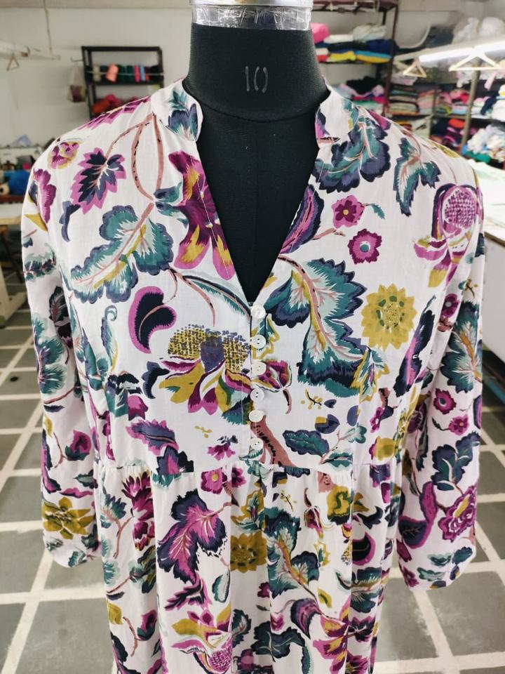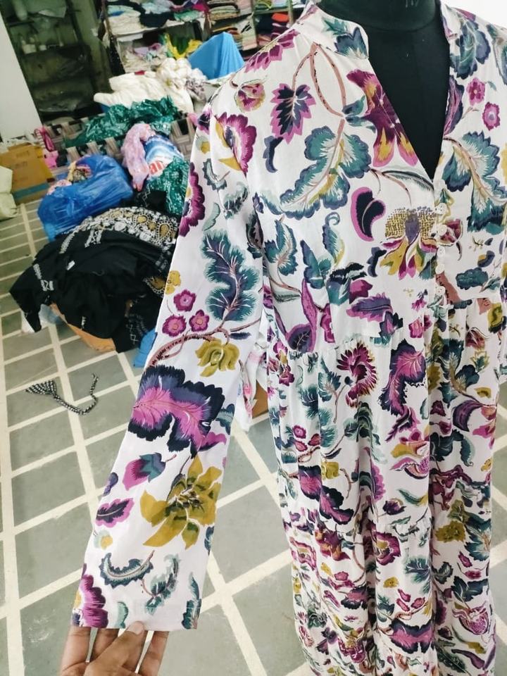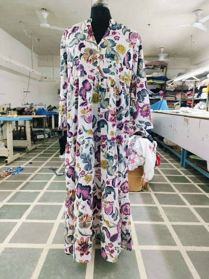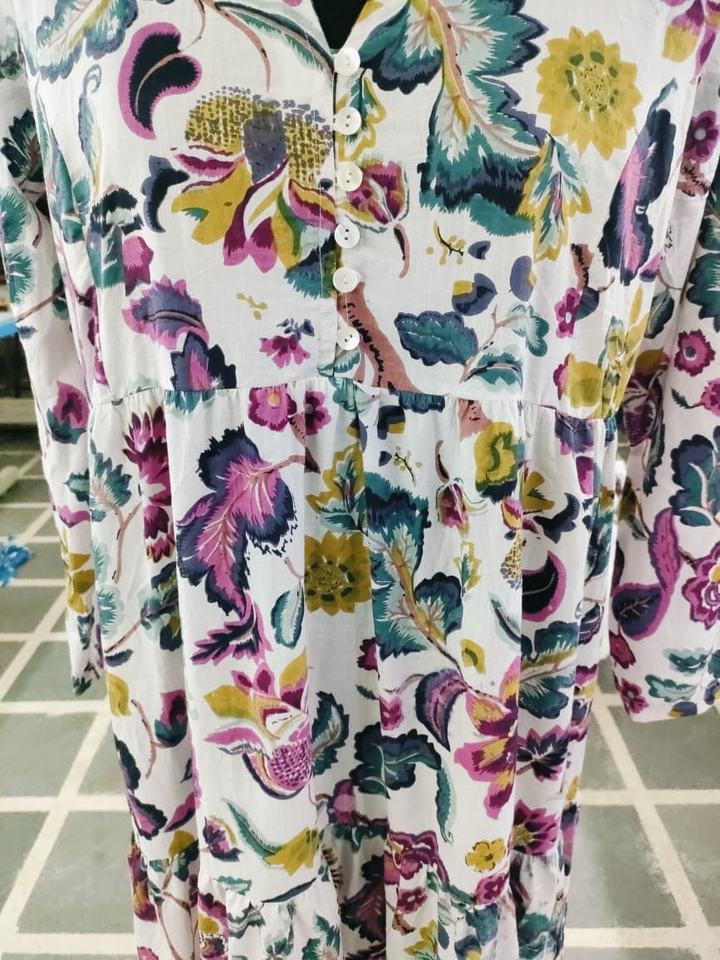 Natural Organic Summer Cotton Breezy Sand Beaches Tropical Printed Women Maxi Dress Boho Chic Collar Neck Bell Sleeve Long Dress