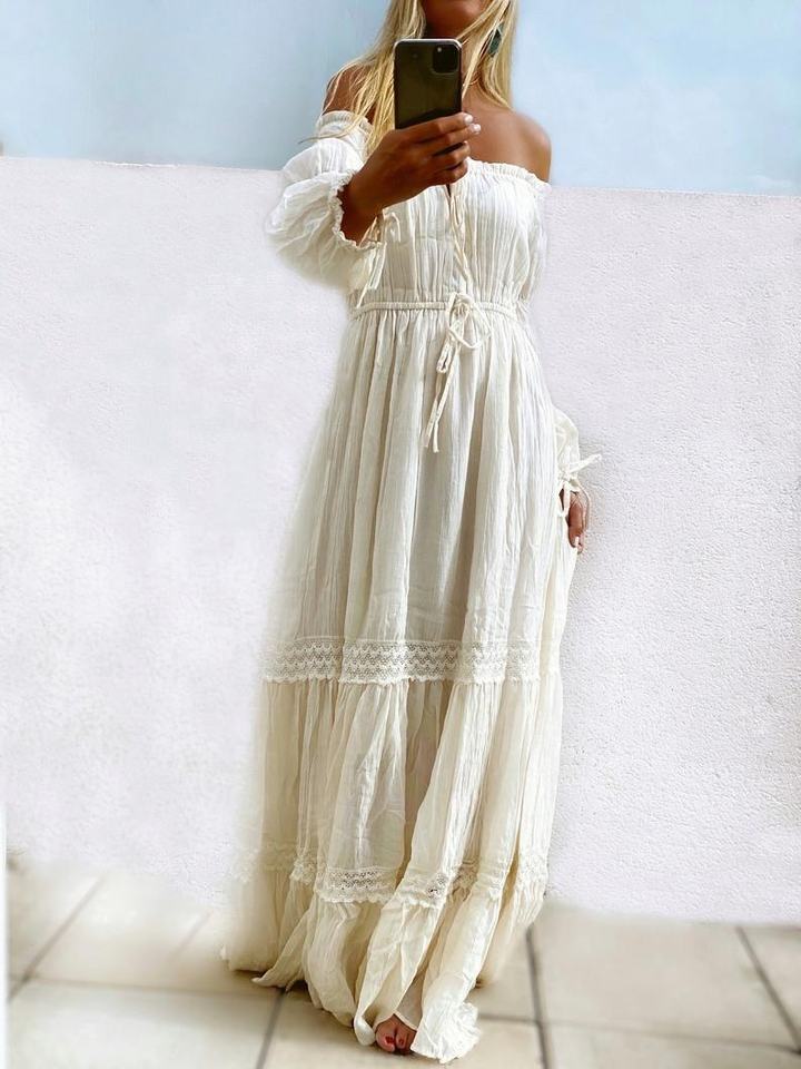 Natural Organic Summer Cotton Breezy Sand Beaches Women Maxi Dress Boho Strapless Empire Waist Wedding Dress With Lace Decor