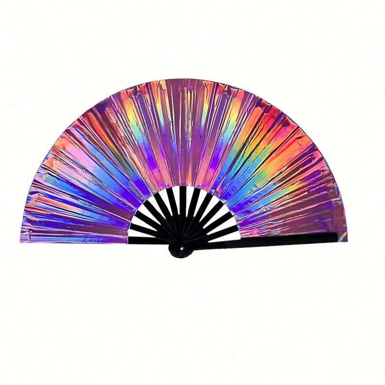 Natural PVC Hand Fan Plastic Angel Style with Floral Pattern for Home Decoration or Business Gifts Features Keychain Design