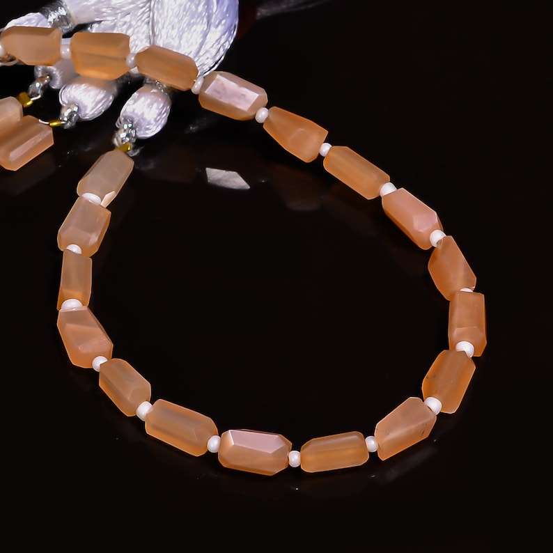 Natural Peach Moonstone Faceted Nugget Tumble Shape Gemstone Beads 6x8mm Loose Handmade Moonstone Beads for Jewelry Making Bulk