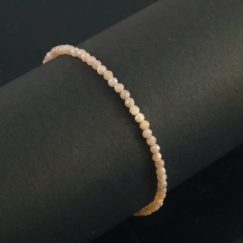 Natural Peach Moonstone Micro Faceted Round Beaded Gemstone Bracelet For Women Handmade Moonstone Jewelry Wholesale Price Bulk