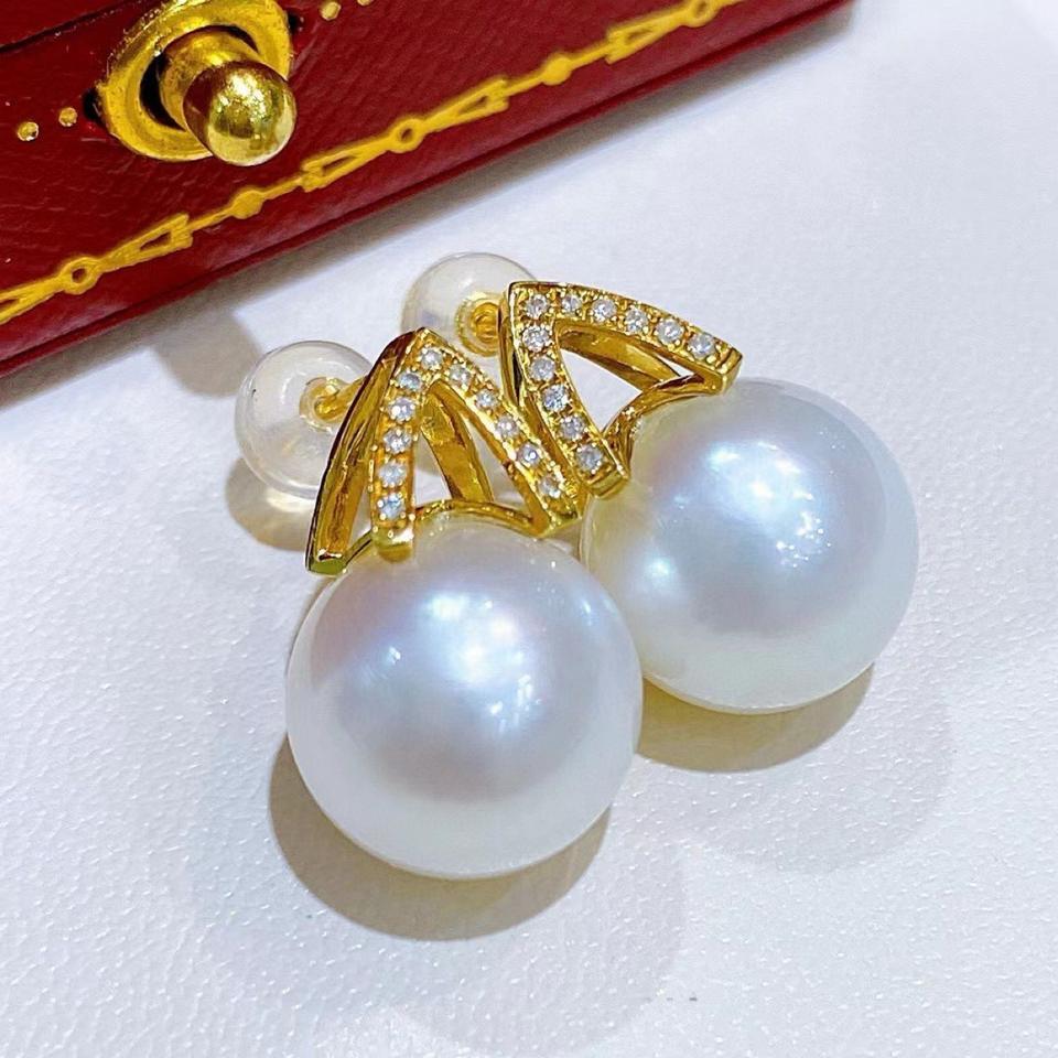 Natural Pearl S925 Pure Silver Stud Earrings 10-9MM Flawless Cold Light with Matching Gift Box