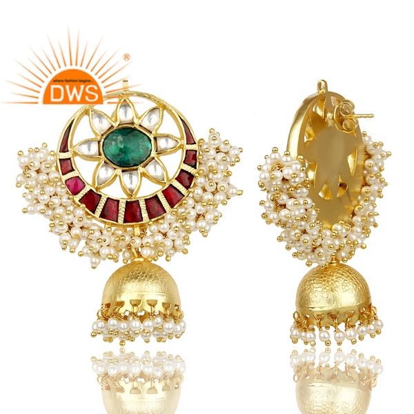Natural Pearl Traditional Earring Indian Gold Plated Meenakari Earring Manufacturer of Silver Jewelry