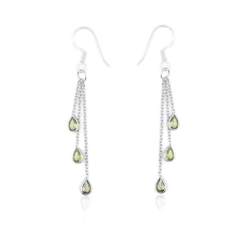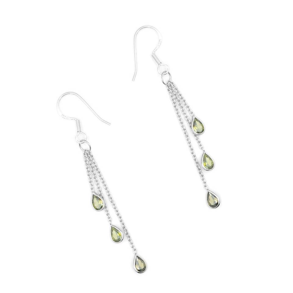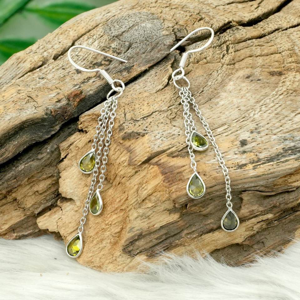 Natural Peridot 925 Sterling Silver Long Drop Earrings for Women Wedding Jewelry and Gemstone Gift