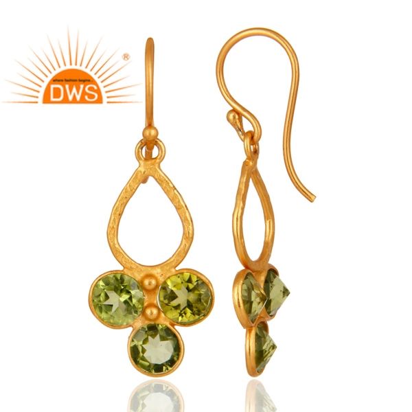 Natural Peridot Gemstone Earring Women's Gold Plated Silver Hanging Earring Jewelry Supplier Classic Collection