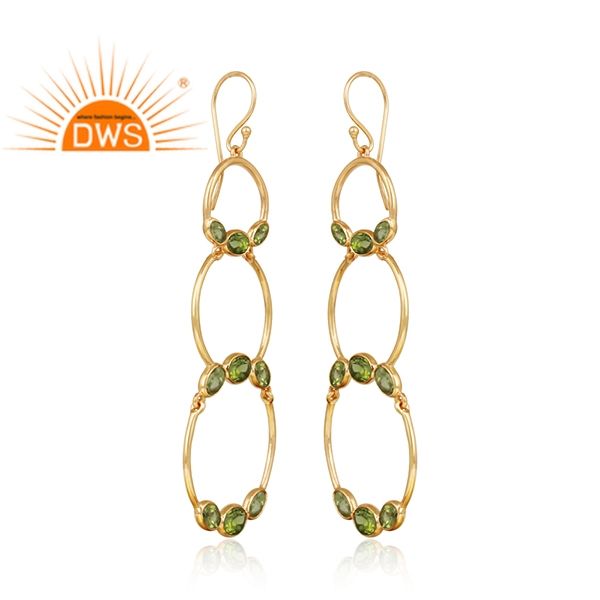 Natural Peridot Gemstone Earrings Suppliers Multi Circle Design Gold Plated 925 Silver Dangle Earrings Jewelry