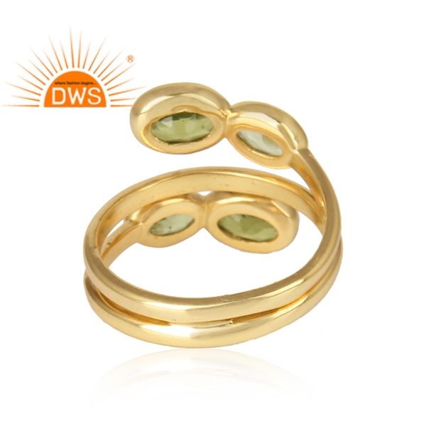 Natural Peridot Gemstone Ring Spiral Gold Plated Sterling Silver Spiral Designer Rings Supplier Jewelry Classic Collection