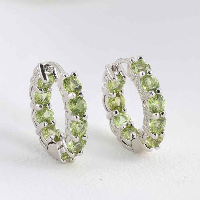Natural Peridot Huggie Hoop Earrings Sterling Silver 18ctw Green Gemstone Inside Out Dainty August Birthstone Jewelry