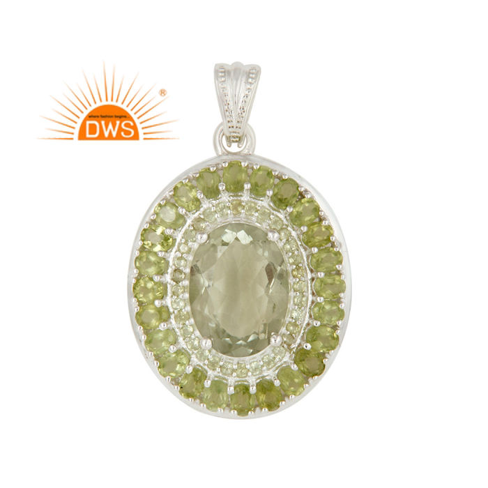 Natural Peridot and Green Amethyst Gemstone Pendant Chunky Oval Shape 925 Silver Women's Pendant Jewelry Supplier
