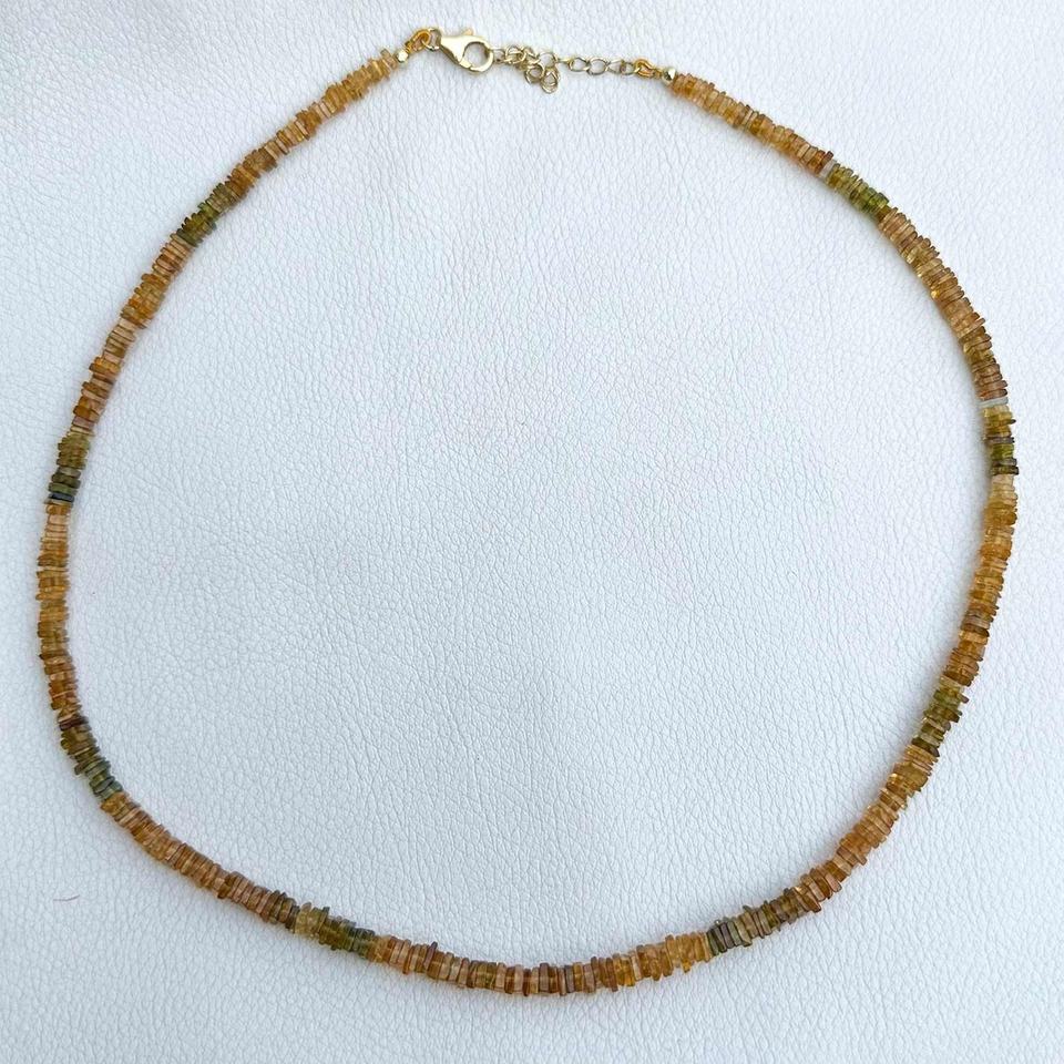 Natural Petro Tourmaline Smooth Square Heishi Beads Necklace Sterling Silver Clasp Beaded Gemstone Jewelry Gold Plated Necklace