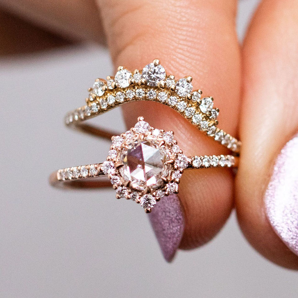 Natural Pink Color Crystal Natural Rose Quartz Jewelry Gold Filled Gemstone 925 Silver Ring Sets
