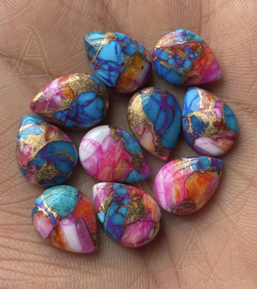 Natural Pink Copper Turquoise Pear Shape Cabochon Turquoise Cabochon Turquoise Gemstone For Jewelry Making