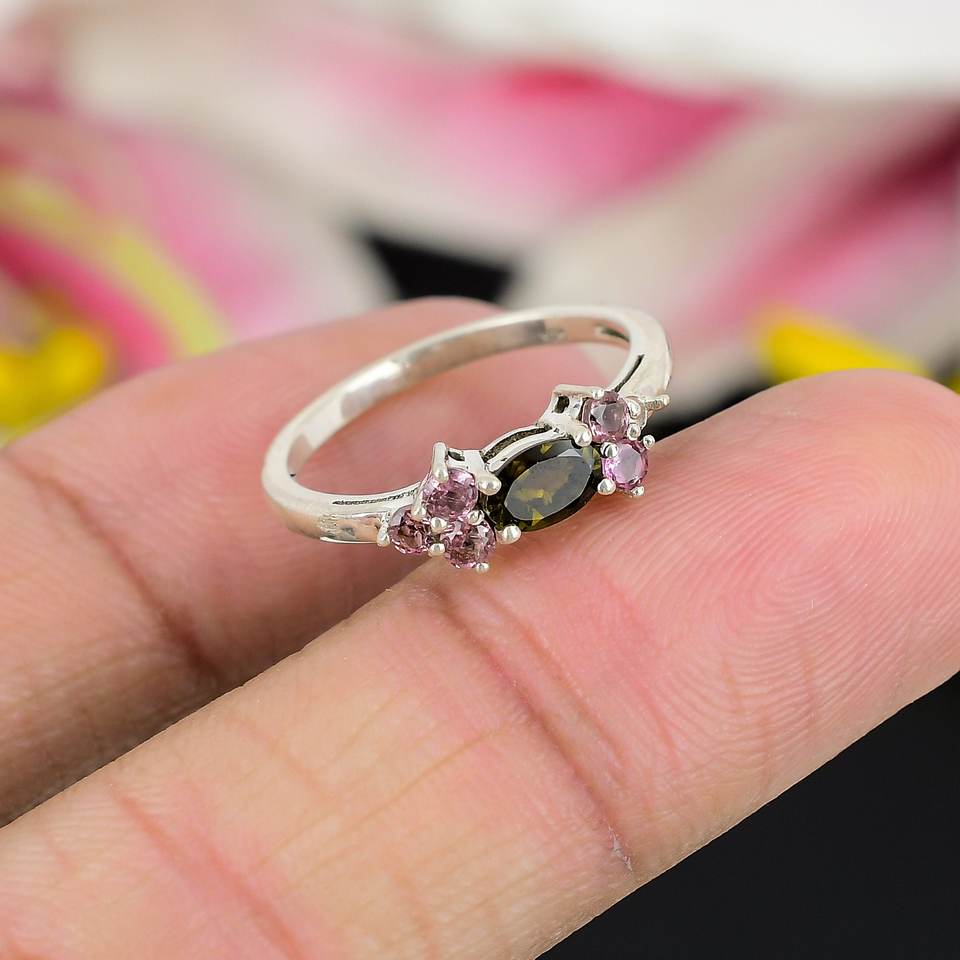 Product name:Green/Pink Tourmaline Gemstone Ring