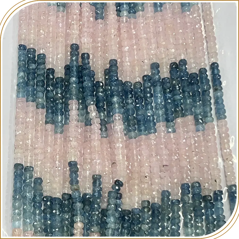 14-Inch Long Strand Natural Pink Morganite and Blue Aquamarine Faceted Rondelle Beads 5mm Size Loose Pearls for Jewelry Making