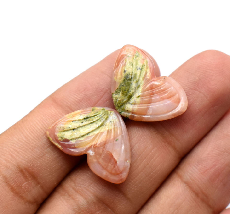 Natural Pink Opal Butterfly Pairs For Earrings , Quartz Crystal Butterfly , Home Decoration , Crystal Gift 23X16 mm 19.70 Ct