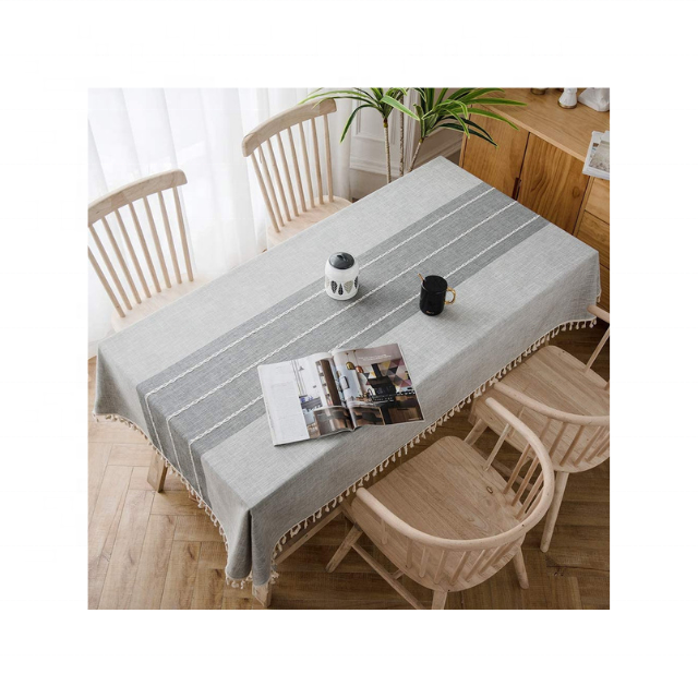 Natural Pink Striped Cotton Embroidered Wedding Elegance Sustainable Durable Gatherings 70x108 Inches Perfect Dining Tablecloth